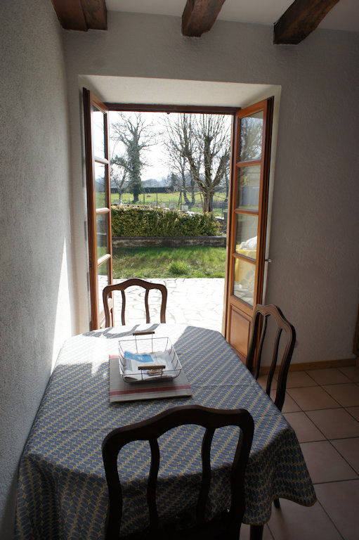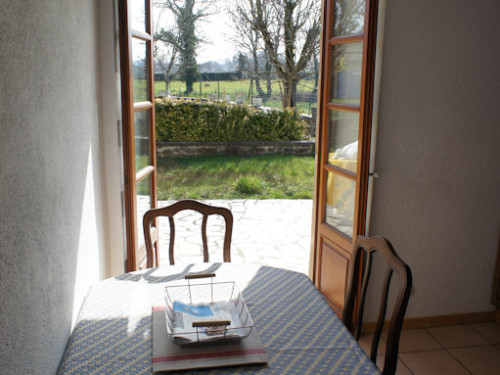 Un espace jardin privé avec terrasse et un grand jardin en partage avec le gîte "les violettes"