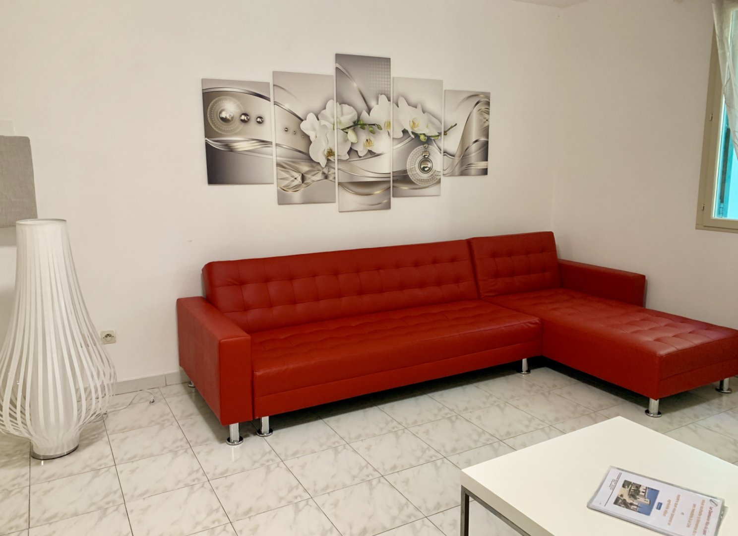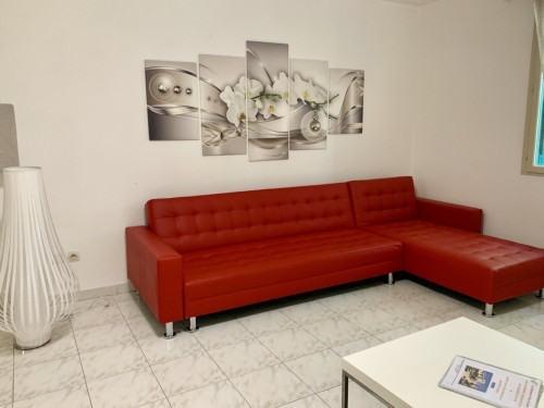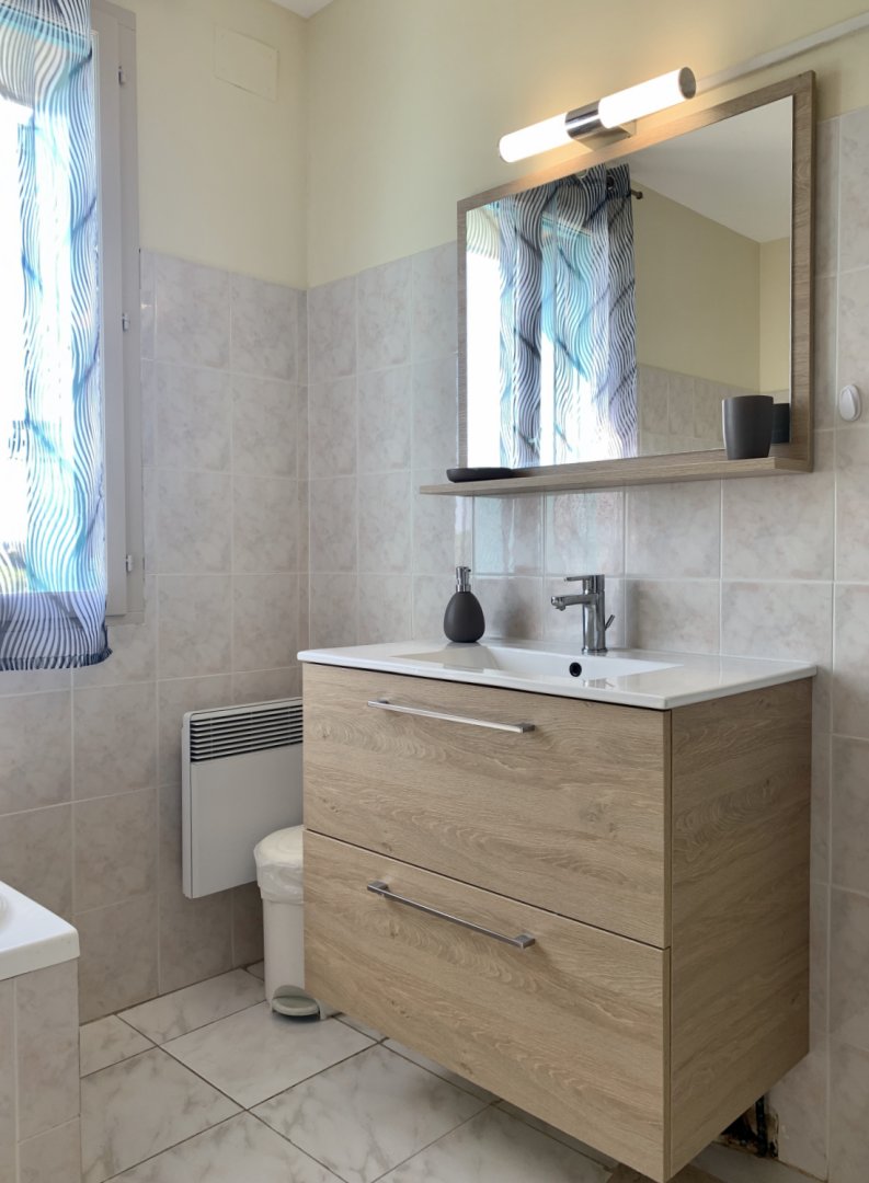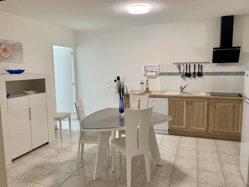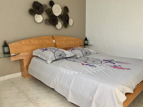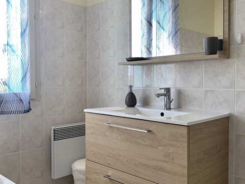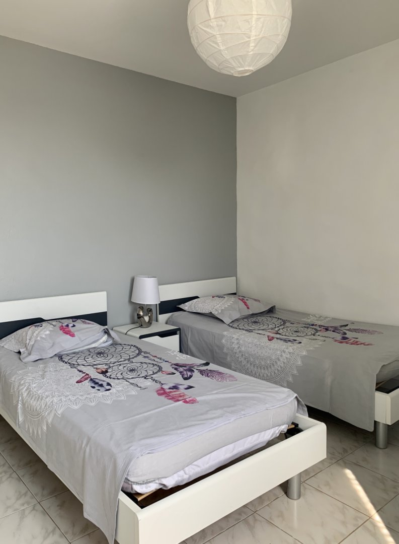 Ideal for 4 people, it includes a large living room, a bedroom with a double bed, a bedroom with 2 single beds, a bathroom and a toilet. Located on the first floor, it has a private terrace with table and chair. The cottage is air conditioned.