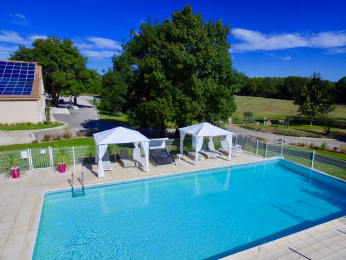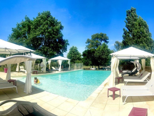 Enjoy a beautiful swimming pool on the Estate with deckchairs and parasols.