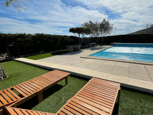 Vous apprécierez les moments de détente sur les poufs type "Fat Boy"et sur les transats autour de la piscine d'où vous pourrez admirer le paysage sur la vallée où se dresse "le Géant de Provence".