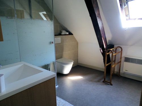 Au rez-de-chaussée se trouve aussi une penderie ainsi qu’un WC.