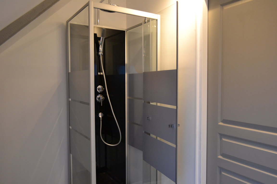 Salle de bains 2 : Douche, Vasque, Sèche-serviettes