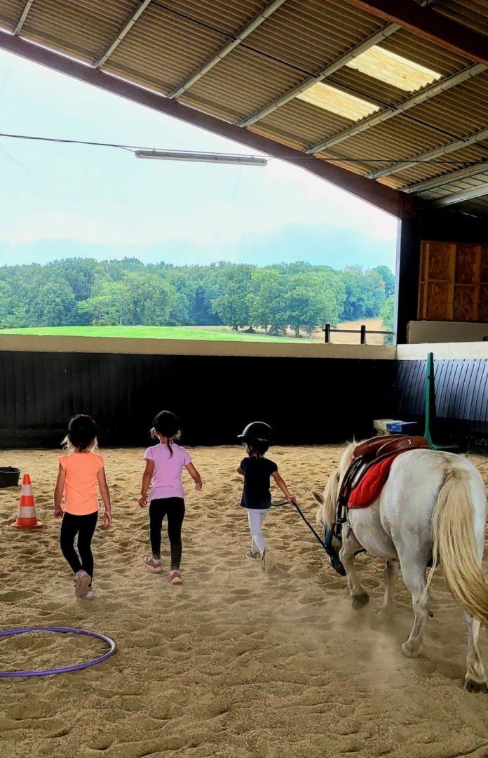 Cours d'équitation sur place tout niveau, promenade à cheval dédiée seulement aux cavaliers sachant se mettre en équilibre, trotter enlevé et galoper en suspension.