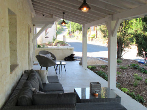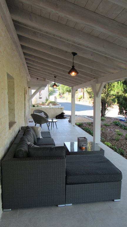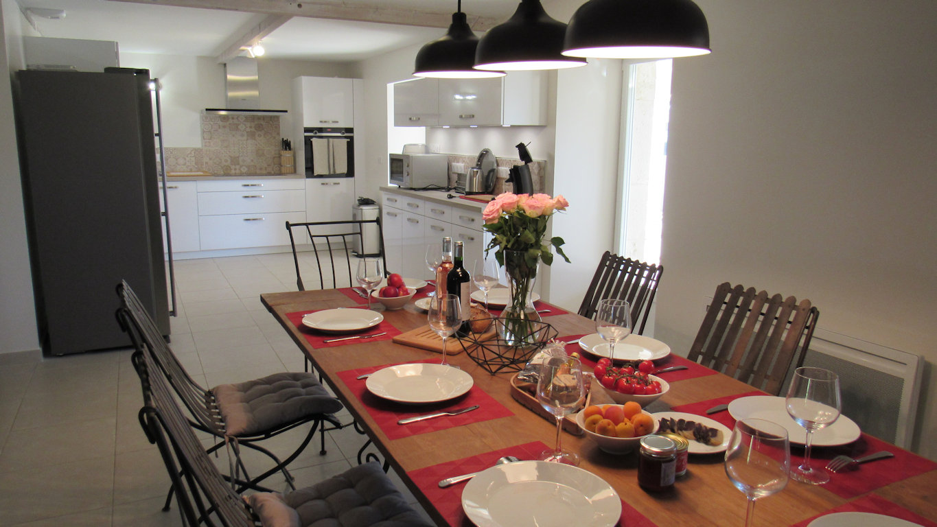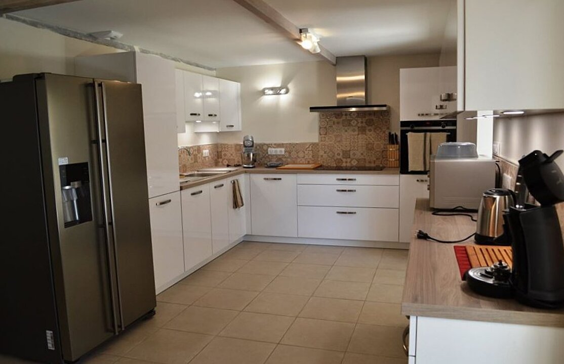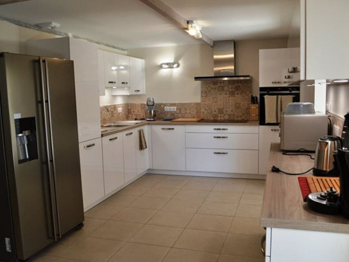 - une cuisine toute équipée donnant sur une terrasse ouverte sur le parc et la piscine 6 x 12 m
