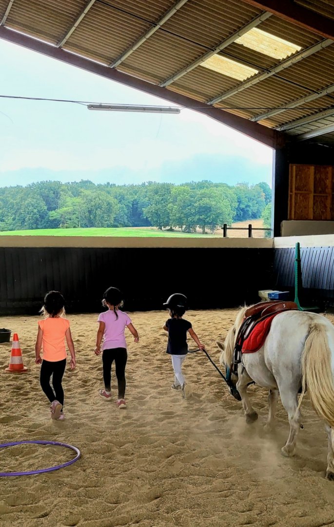 Cours d'équitation sur place tout niveau, promenade à cheval dédiée seulement aux cavaliers sachant se mettre en équilibre, trotter enlevé et galoper en suspension.