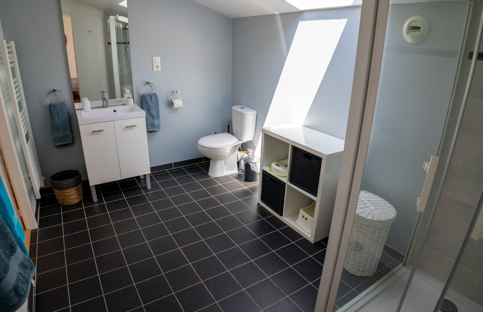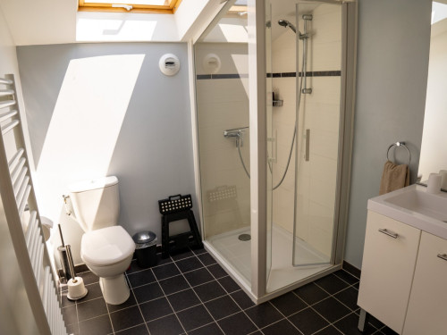 Salle de bains 1 : Douche, Vasque, Sèche-cheveux, Sèche-serviettes