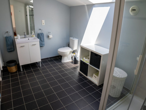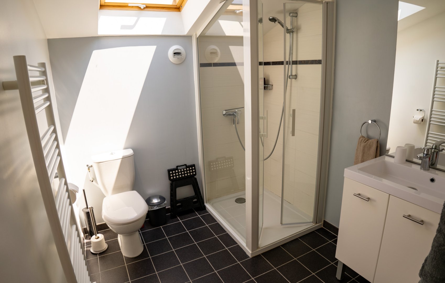 Salle de bains 2 : Douche, Vasque, Sèche-serviettes