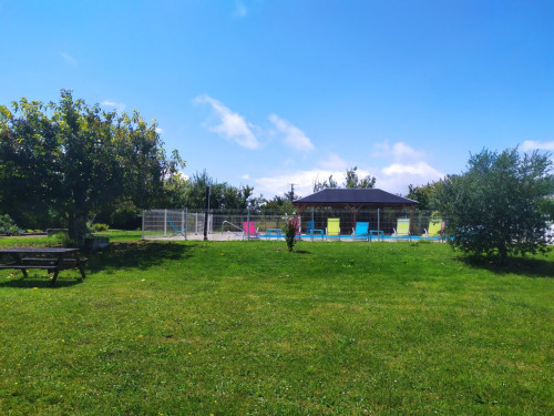 Dans le jardin, nous avons une portique balançoire et toboggan, terrain de pétanque, grand trampoline, divers jeux, tables et chaises de pique-nique.