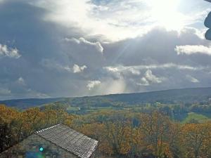 The holiday home with a terrace and mountain views has 2 bedrooms, a living room, a flat-screen TV, an equipped kitchen with a dishwasher and an oven, and 1 bathroom with a hot tub. Towels and bed linen are available in the holiday home. There is also a seating area and a fireplace.