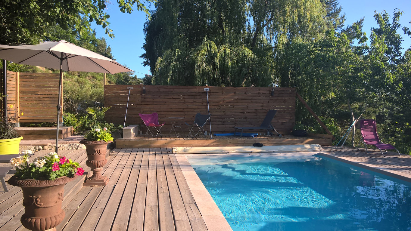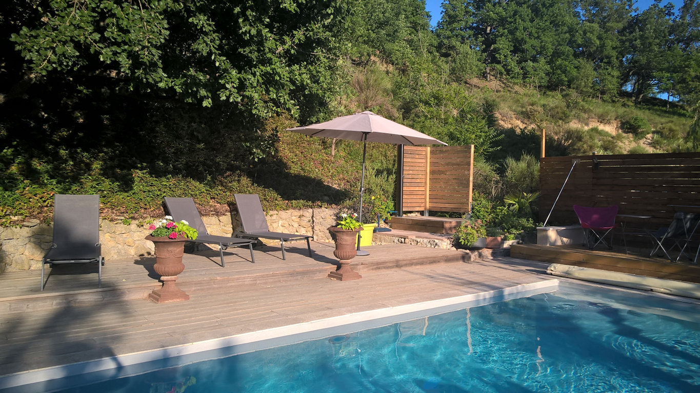 La piscine est ouverte et chauffée selon la météo, de début mai à fin septembre. Elle est est partagée avec un autre gite et deux chambres d'hôtes.