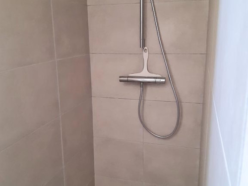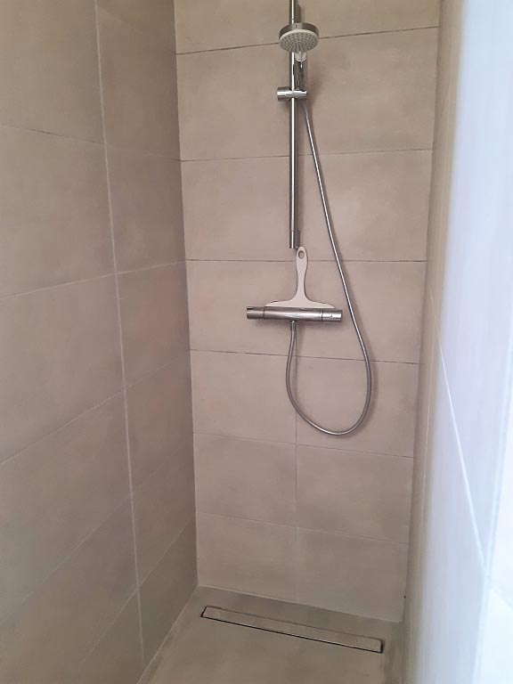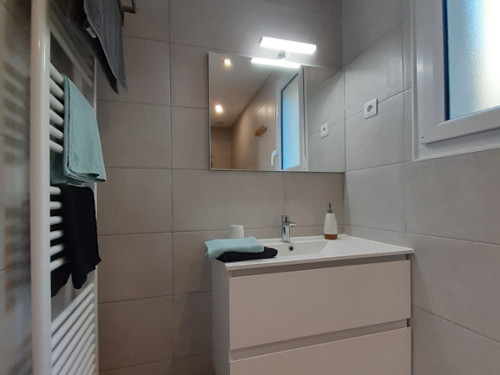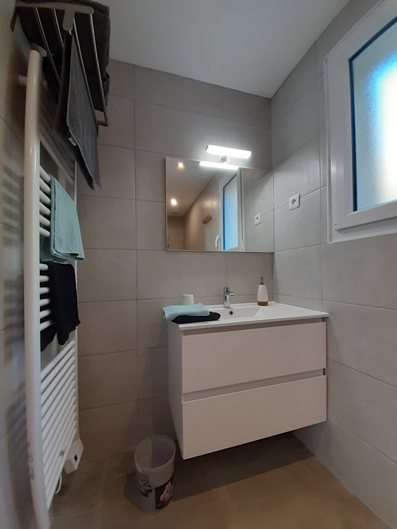 - Salle d’eau avec douche à l’italienne et sèche serviettes