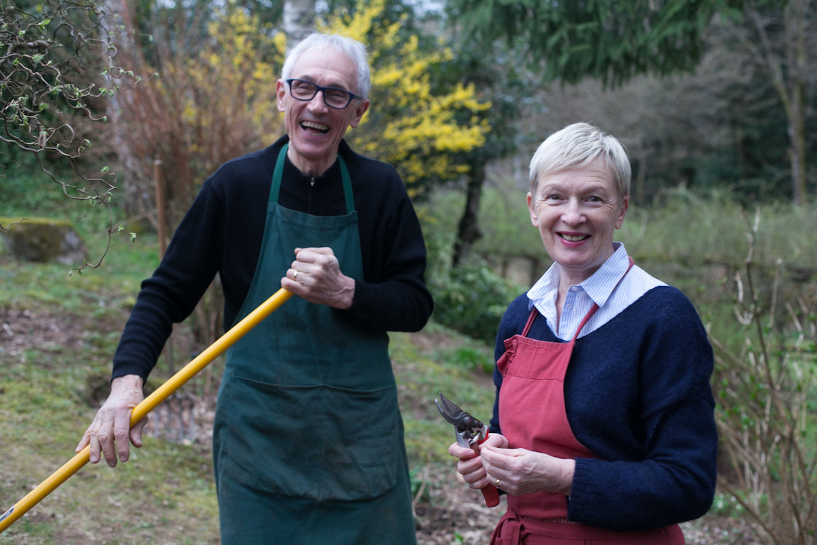 Passionnés de jardinage, Fiorella et René ont à cœur d'entretenir leur jardin afin qu'il soit beau et accueillant pour le plaisir de leurs hôtes. René, dans son atelier d'ébéniste, fabrique bancs,cabanes et dentelles de bois , tandis que Fiorella soigne avec tendresse roses et hydrangéas.