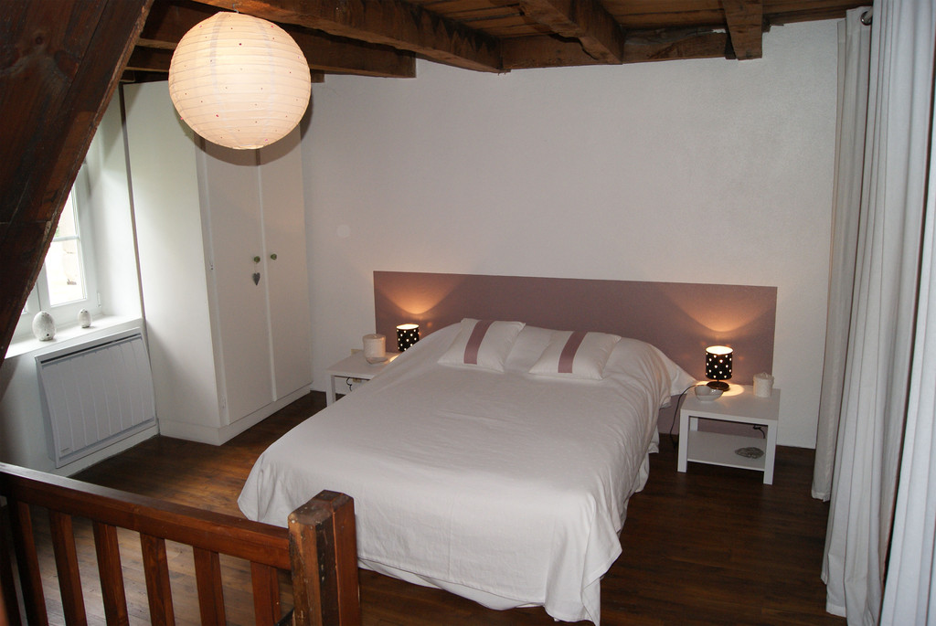 Une chambre en mezzanine avec un lit double (140 x 200 cm)