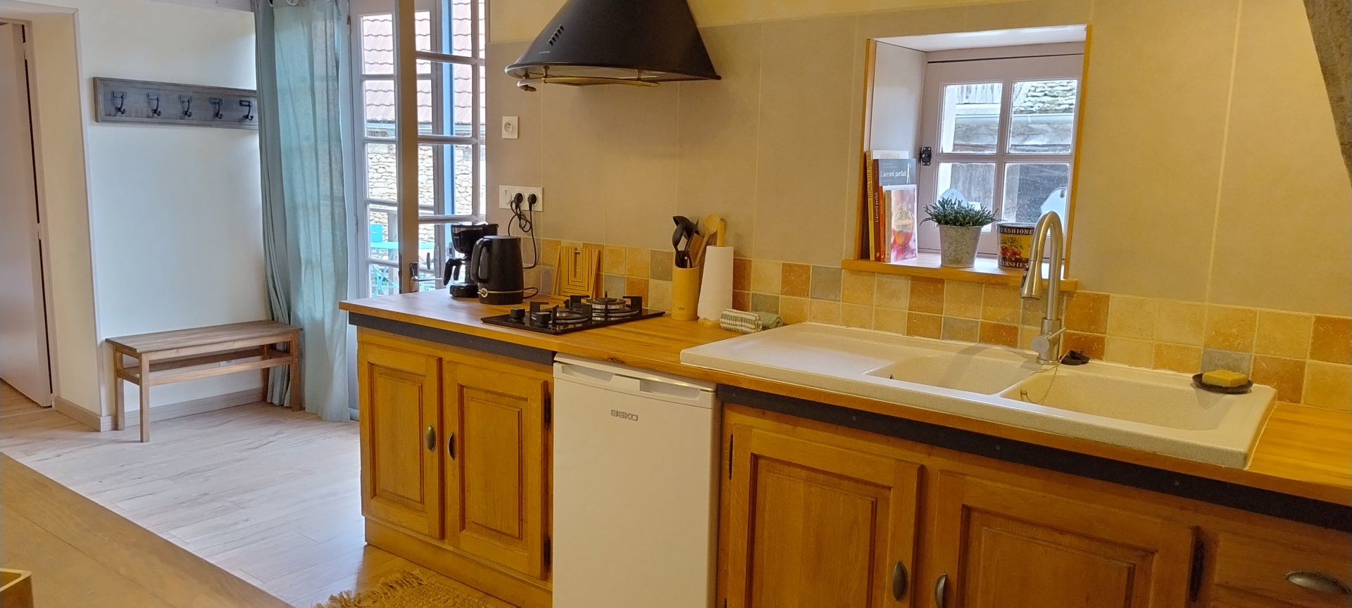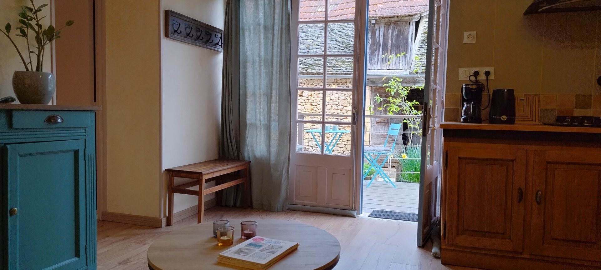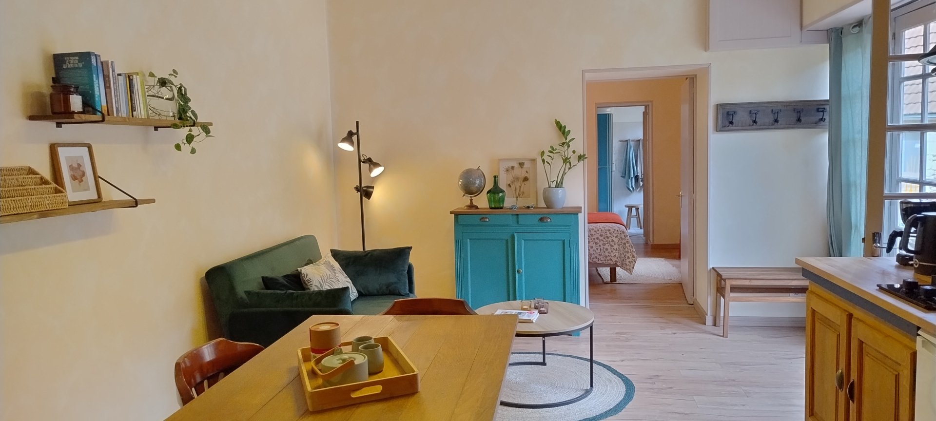 Notre gîte "Les Bienheureux", un hébergement indépendant parfait pour un couple, allie le charme de l’ancien au confort moderne. Il comprend un salon avec cuisine équipée et son vieux "four à pain", une chambre cosy (lit 160x190), une salle d’eau avec WC, ainsi qu’une terrasse donnant sur la cour.