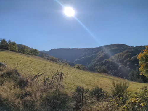 Nous proposons un plateau repas de produits locaux (charcuteries et fromages du Pays, salade de lentilles vertes aux petits légumes)
