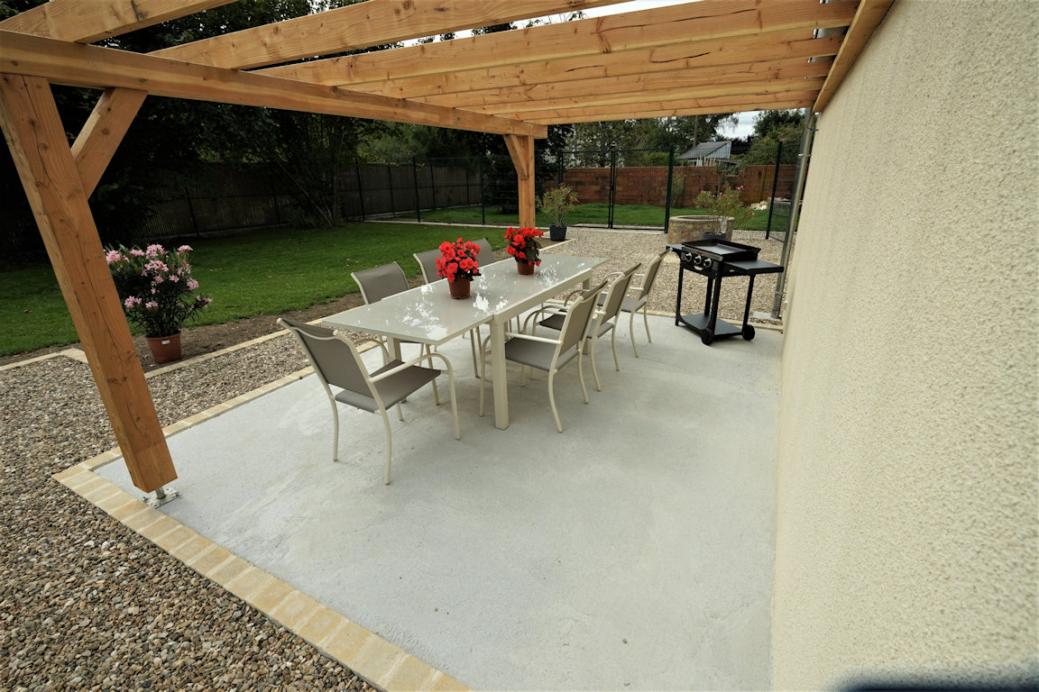Gîte climatisé, avec 4 véritables chambres, au cœur de l'Indre en Berry, jardins arborés, cour de 200 m² et jolie terrasse privative avec pergola et plancha.