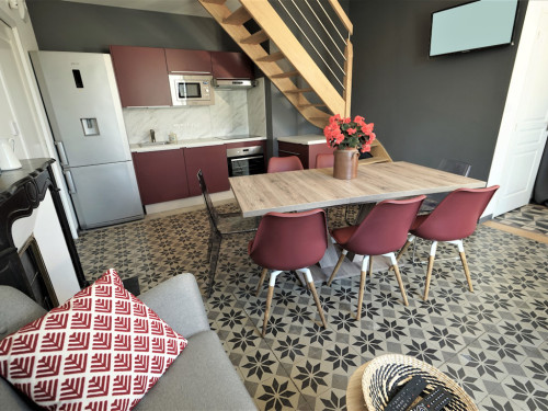- pièce de vie avec salle à manger (TV & chaînes Orange) / cuisine équipée