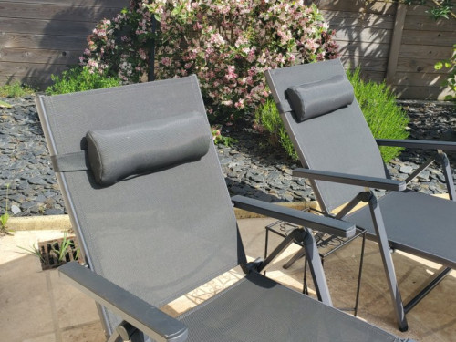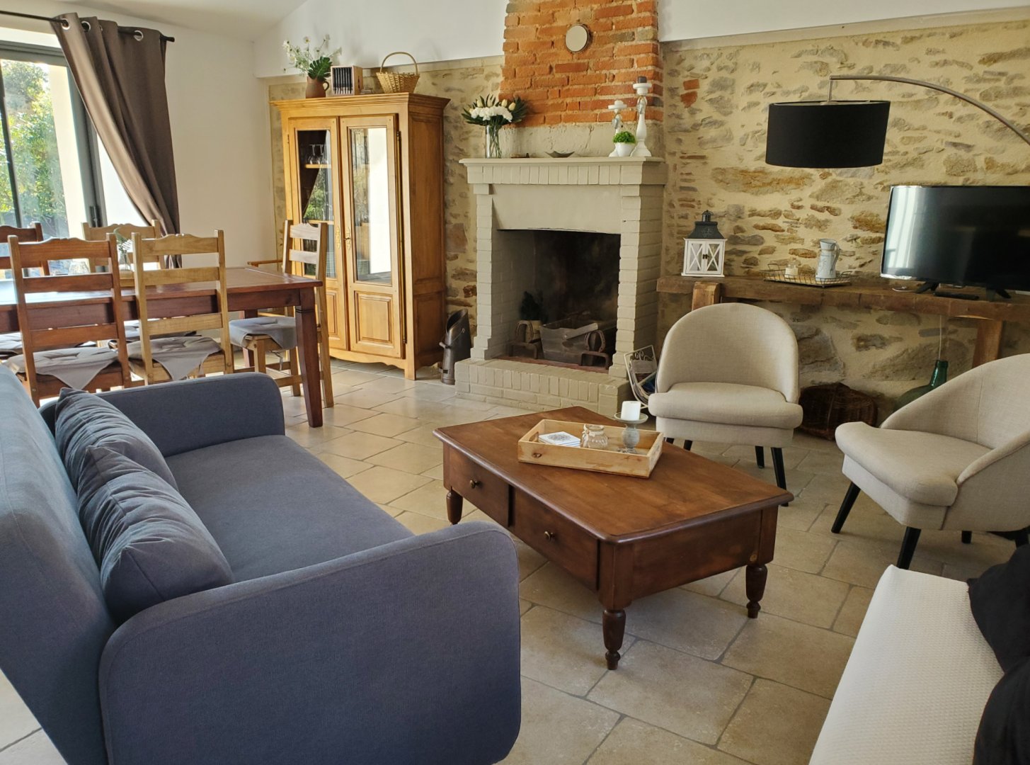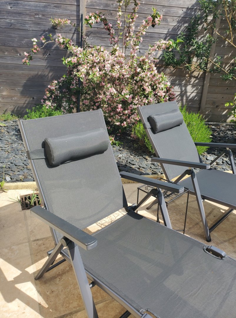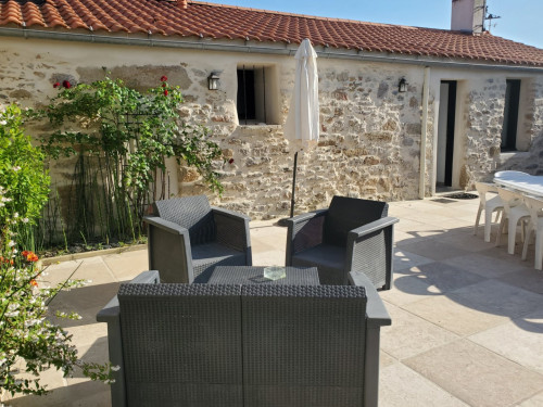 - terrasse 80 m² entièrement close, carrelée pierre, aménagée, barbecue Weber, salon apéritif canapé/fauteuils, grande table, parasol, 2 transats.