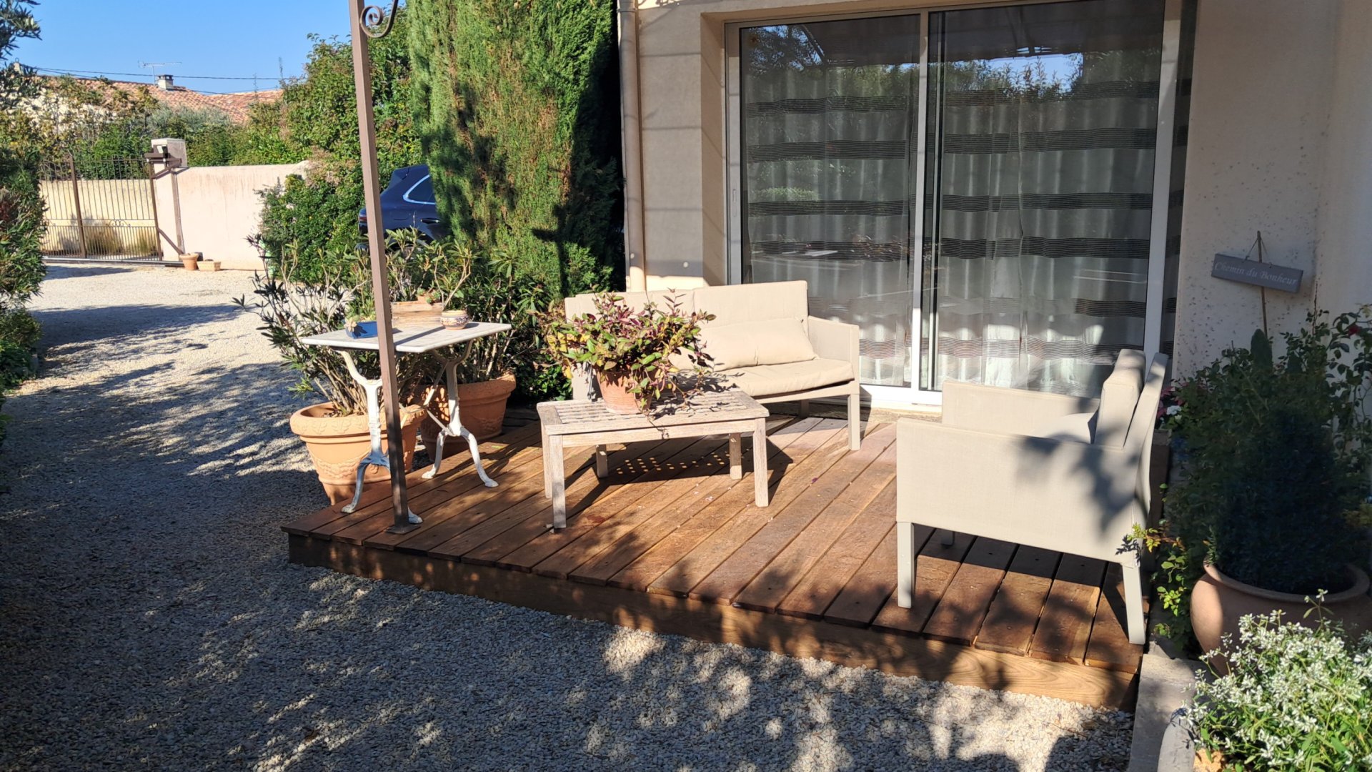 2 terrasses extérieures dont une couverte avec salon de jardin et l'autre salon détente.