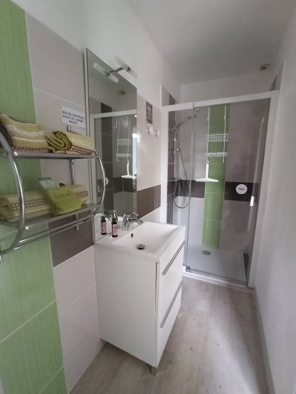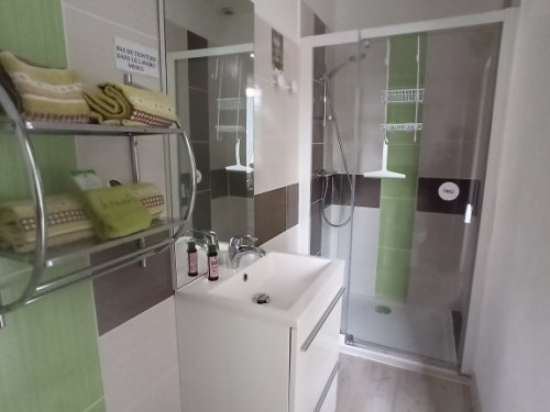 L' appartement est au 1er étage de notre maison familiale avec entée personnelle comprenant :