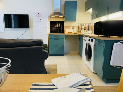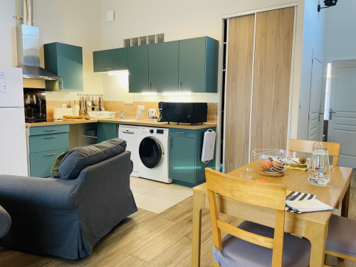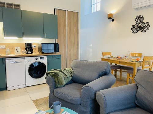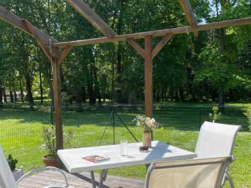 Dès votre arrivée, laissez-vous séduire par une vaste pièce à vivre lumineuse, agrémentée d'une cuisine entièrement équipée pour des moments conviviaux. La chambre, orientée au nord, dispose d'un grand lit (180x200 cm) pour des nuits paisibles. La salle de bain spacieuse, dotée d'une douche à l'italienne et d'un siège, ainsi que des toilettes séparées, ajoutent au confort. Vous apprécierez aussi la terrasse/jardin privatif, parfaite pour des instants de détente au milieu de la nature. Votre chien (moins de 30 kg) vous accompagnera pour ce séjour ressourçant.