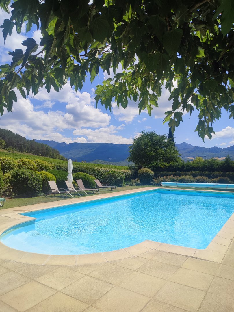 Between the Drôme river and the old village of Mirabel, rural lodgings of character for 2 to 8 people. (50 to 110 m²) with terrace and garden overlooking a vast swimming pool bordered by vines in a magnificent site.