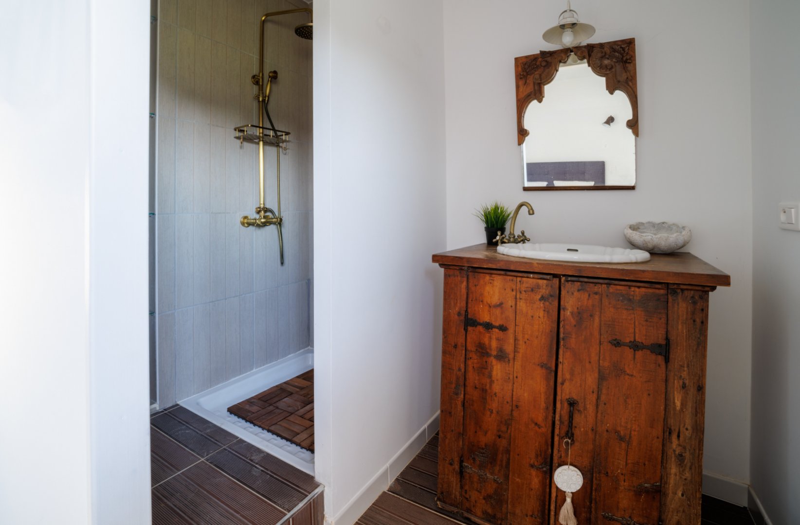 Cottage with 3 bedrooms, 2 bathrooms, one with shower and bath, fully equipped kitchen with terrace and a large living room opening onto a beautiful terrace with heated swimming pool.