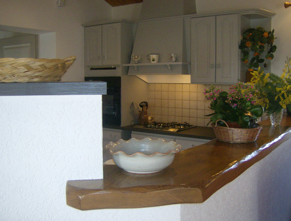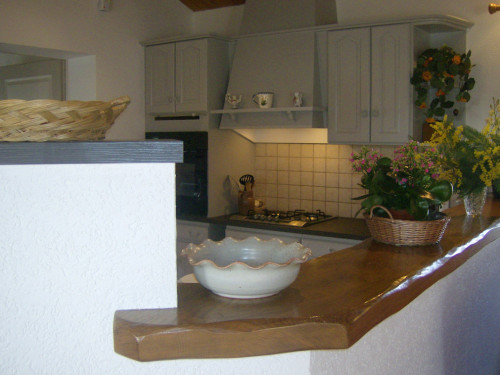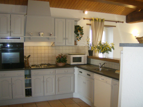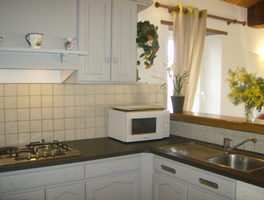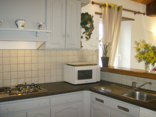 Entièrement de plain-pied : un séjour/salon comportant une cheminée avec insert. Le coin-cuisine contient les équipements décrits (micro-ondes, etc). Vous disposez également d’un téléphone en accès limité (téléséjour).
