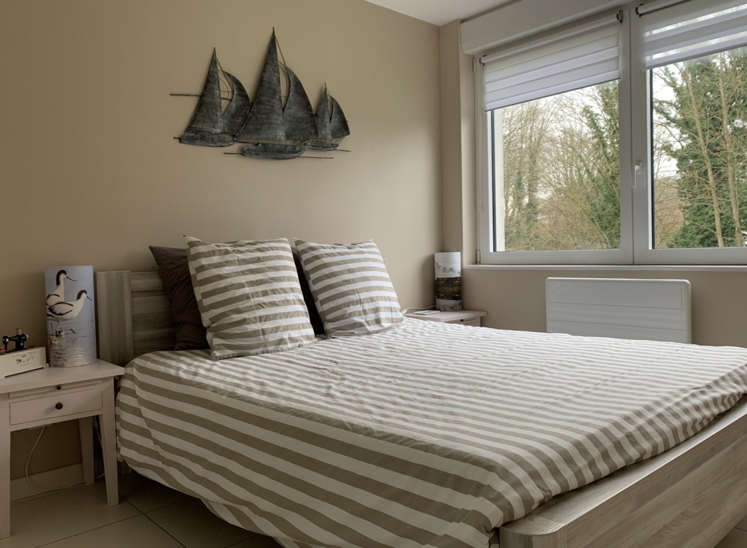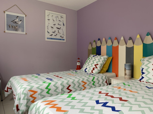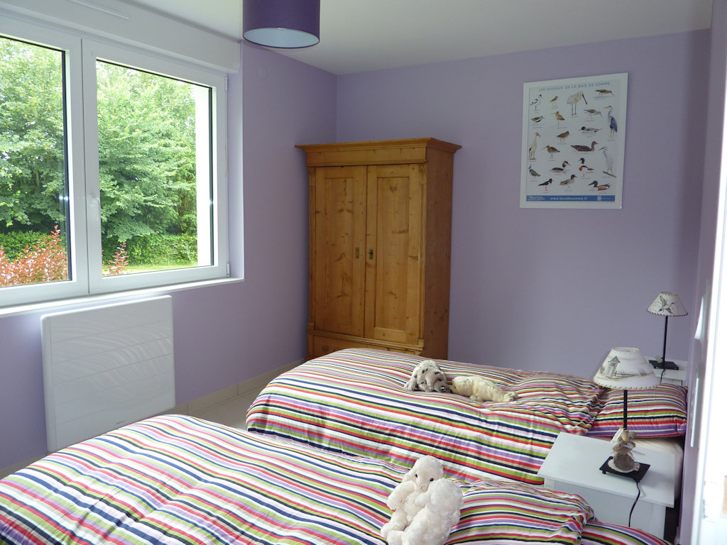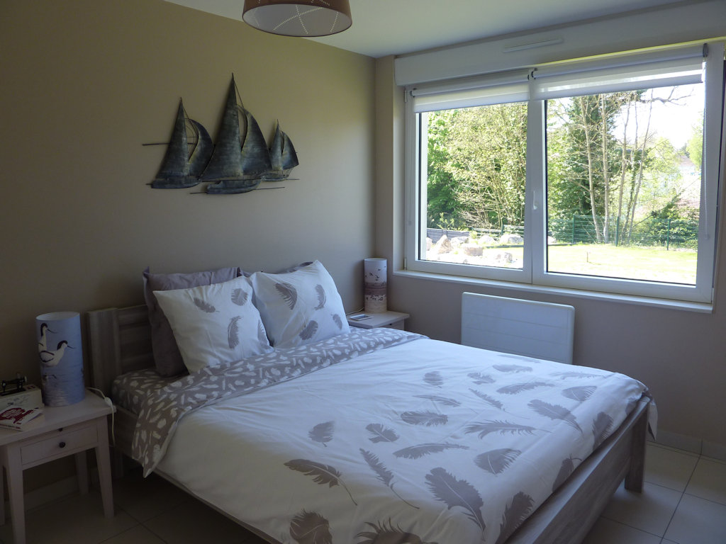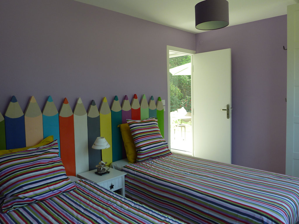 - 1 chambre avec un grand lit 160x200 et 1 chambre avec 2 lits 90x200 pouvant être rapprochés à la demande en un seul lit 180/200.