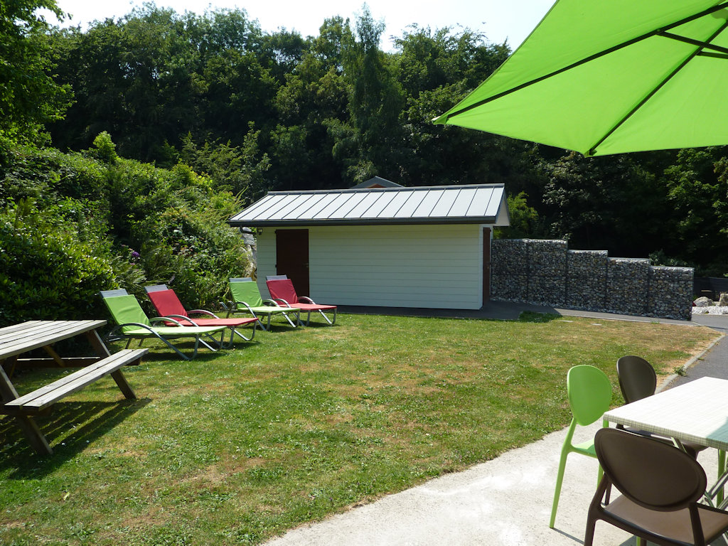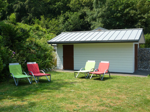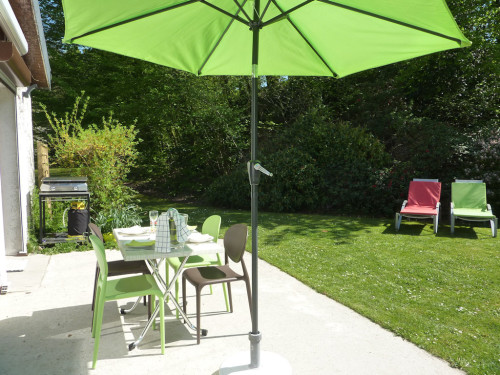 Terrasse, transats, plancha, salon de jardin, local vélos fermé.