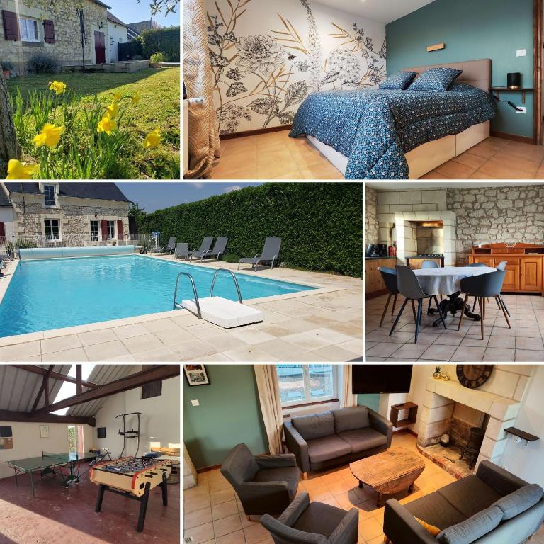Proposant une piscine, un jardin, une terrasse et connexion Wi-Fi gratuite, l’établissement Gites les volets rouges d'Allonnes se trouve à Allonnes et offre une vue sur la piscine.
