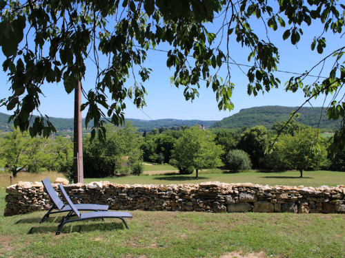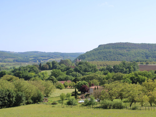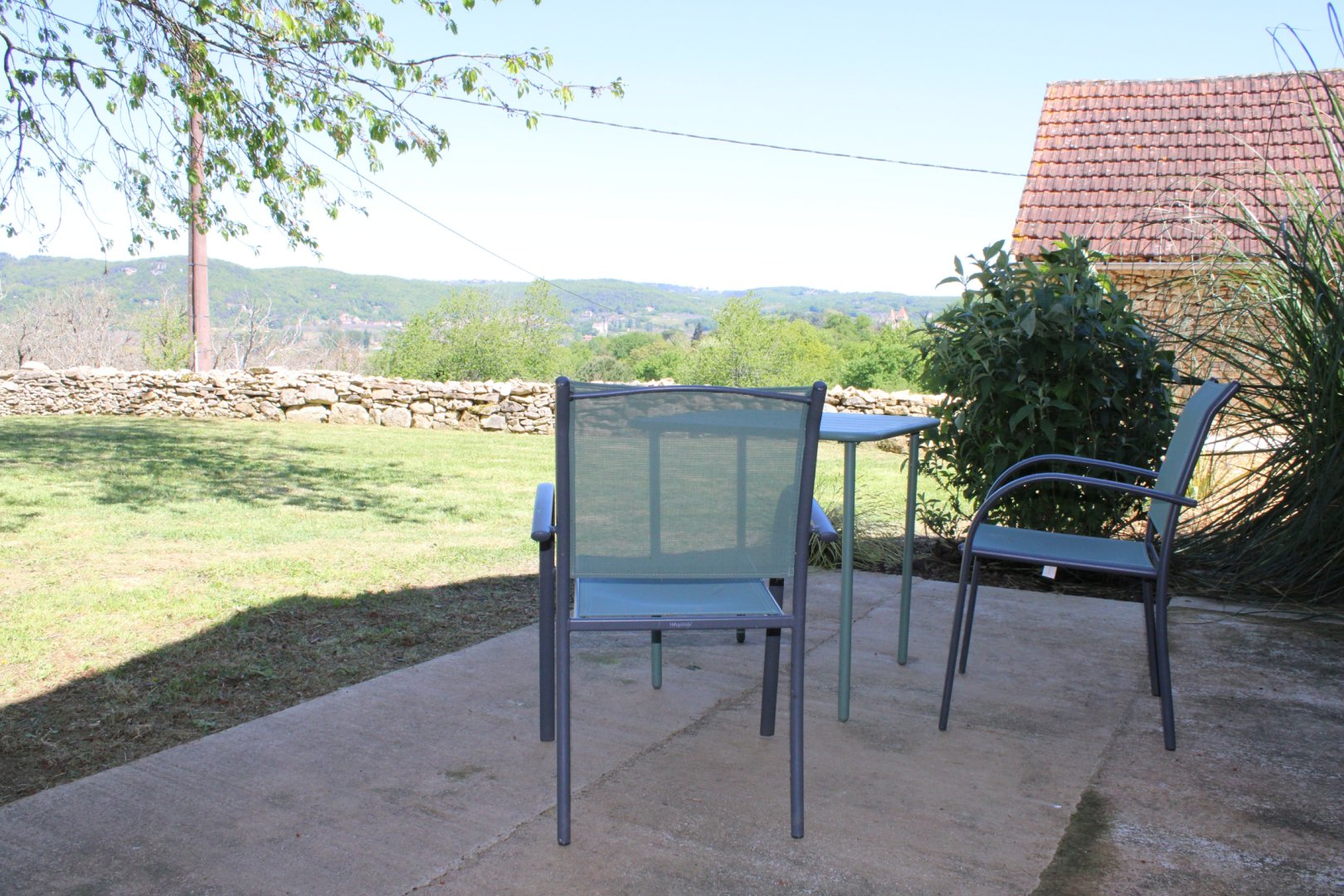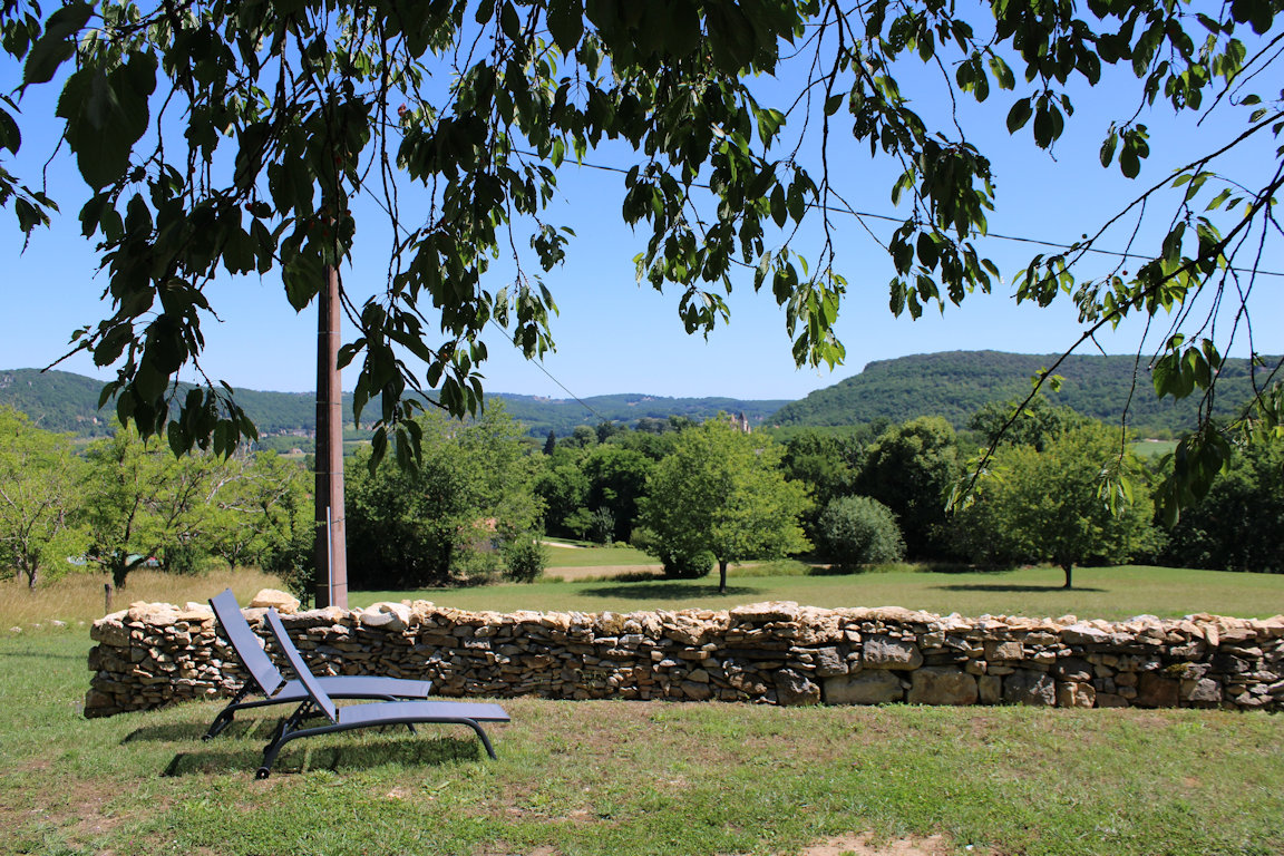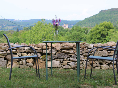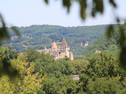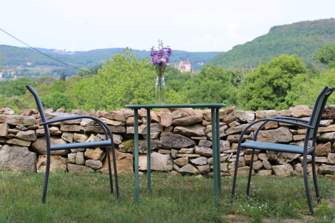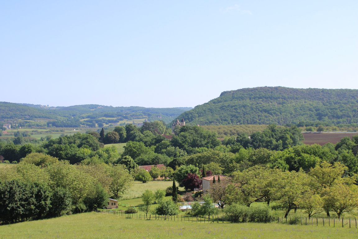 De la terrasse et du jardin, on a une vue sublime sur la vallée de la Dordogne avec son Château des Milandes. Le château où Joséphine Baker a vécu une grande partie de sa vie.