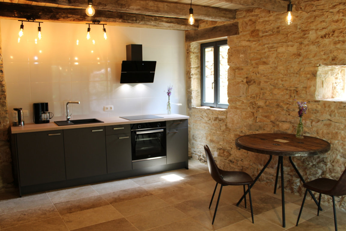 Le gîte dispose d'une cuisine avec des appareils électroménagers intégrés (plaque à induction, four, réfrigérateur), un coin repas et un coin salon. Dans cette chambre, vous disposez d'une télévision par satellite avec lecteur DVD, et d'une connexion Internet gratuite (WiFi et connexion fixe possibles).
