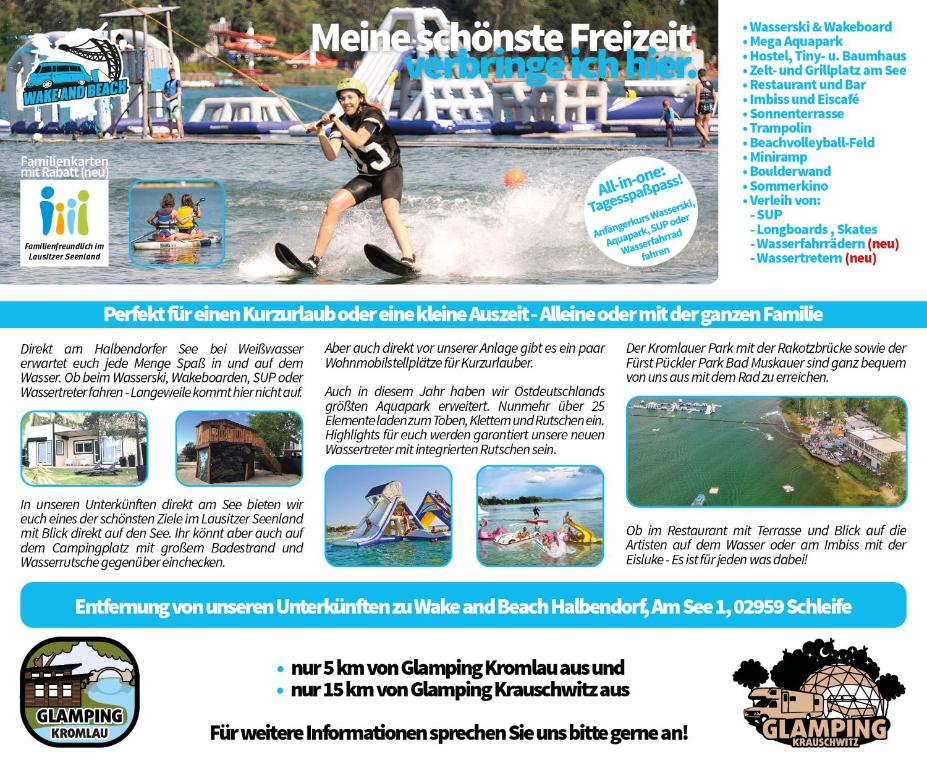 Offering a terrace and garden view, Glamping Kromlau is set in Gablenz, 36 km from Fair Cottbus and 37 km from Spremberger Street. Boasting private check-in and check-out, this property also provides guests with a children's playground. There is free private parking and the property offers paid airport shuttle service.