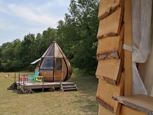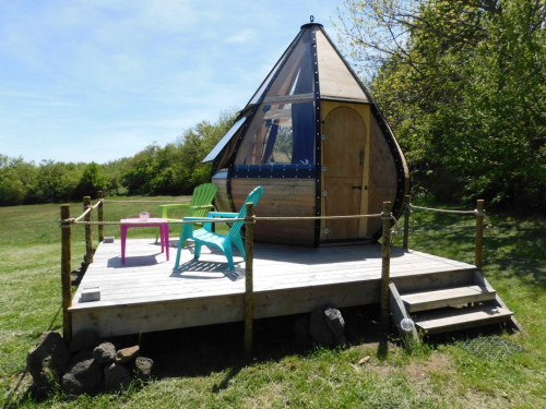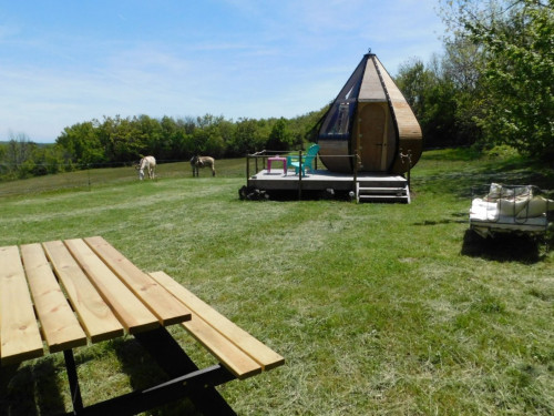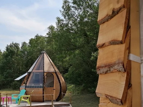 Le logement insolite des Gîtes de Sylilanse est une jolie goutte d’ô en bois pleine de charme construite au cœur de la nature, dans un environnement très calme.