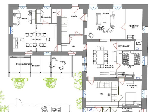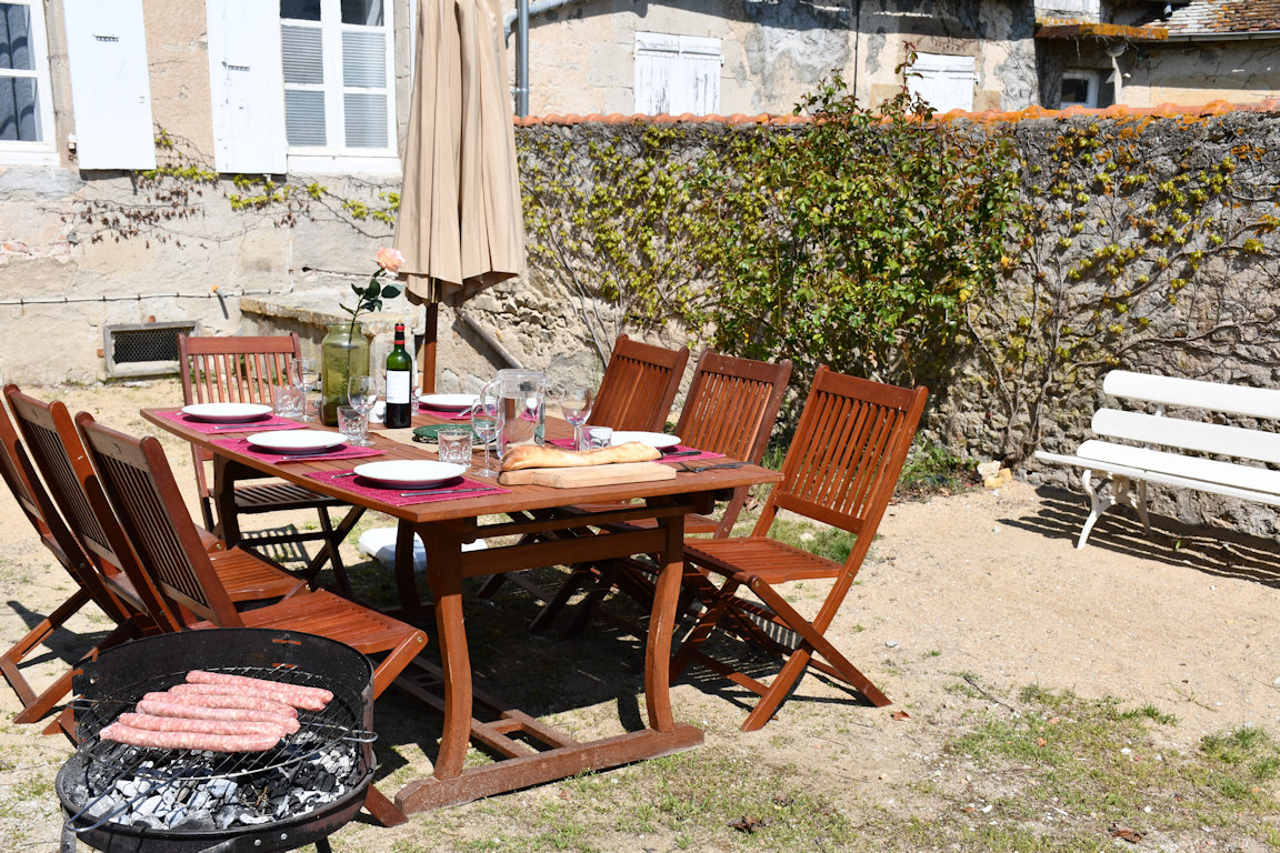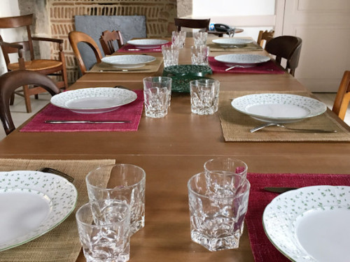 Grand espace vert 4500 m², ombre, cour, abri 2 voitures. Draps fournis lits faits. Bébés bienvenus. Possibilité de location de salle dans le village. GITE NON FUMEUR.