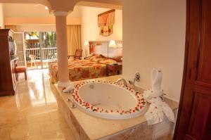 The air-conditioned rooms and suites at Grand Palladium Select Bávaro - All Inclusive offer free satellite TV and a work desk. Guests will find rooms and suites with separate seating areas and hydromassage tubs. Other features include private balconies and patios offering views of the ocean or the hotel’s pool and garden.
