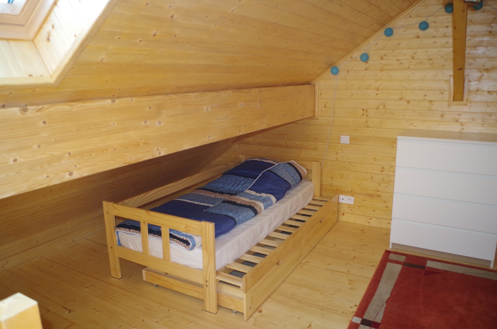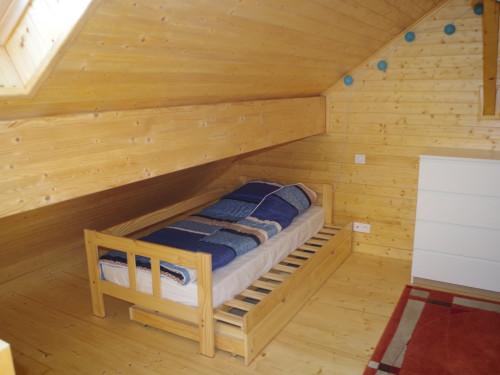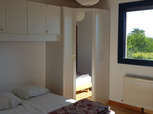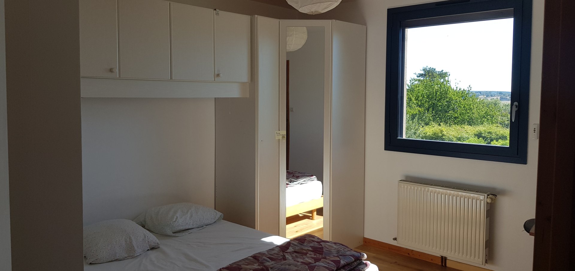 1 chambre avec 2 lits qui sont superposés (1 lit en 140 en bas et 1 lit en 90 en haut), armoire
