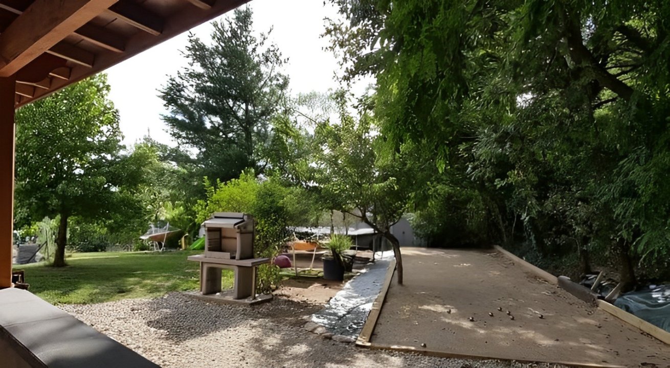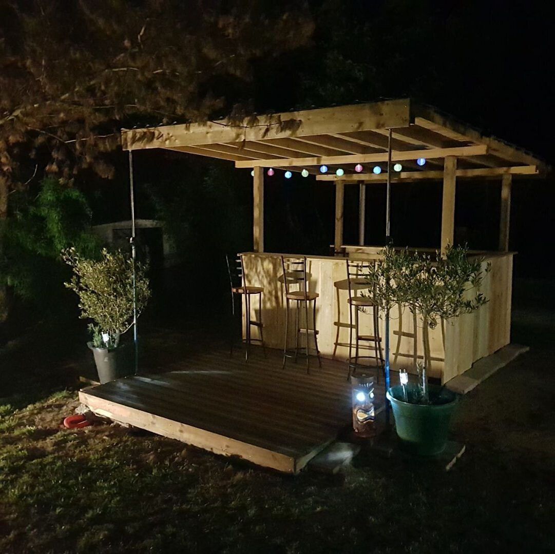 Le chalet est à une vingtaine de mètres de la maison sur le même terrain.