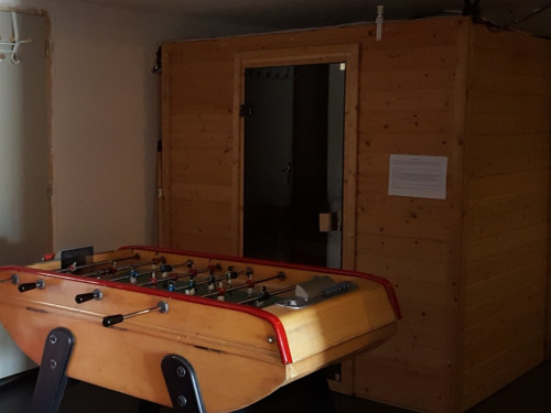 Ses nombreux équipements réjouiront petits et grands : sauna, banc de muscu, vélo d'appartement, tennis de table, flipper, baby-foot.