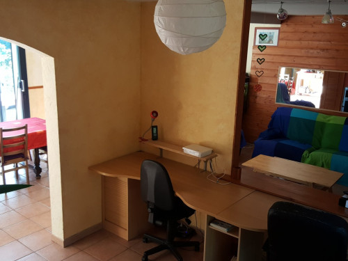 Le "sous-sol" est au niveau du parking et du terrain de foot. C'est une pièce très agréable en été car toujours fraîche (à condition de la maintenir fermée !).