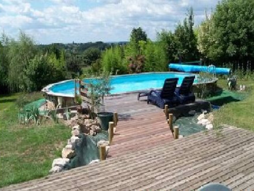 - une piscine de 9 x 4.50, profondeur 1,35 m , équipée d'une alarme en bord de piscine terrasse, bains de soleil et hamac,