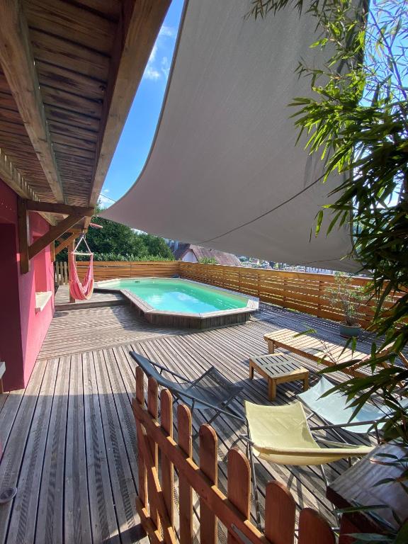 Set in Fréland, Grande maison bi-familiale, belle vue, piscine offers accommodation with a private pool, a balcony and mountain views. This property offers access to a terrace, free private parking and free WiFi. The property is non-smoking and is located 18 km from House of the Heads.