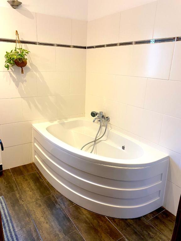 The spacious holiday home comes with 5 bedrooms, a fully equipped kitchen with a dishwasher and an oven, and 2 bathrooms with a bath, a hair dryer and a washing machine. Towels and bed linen are featured in the holiday home. There is also a seating area and a fireplace.
