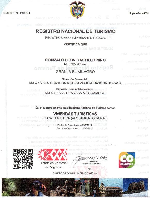 Granja el Milagro - Cabañas Campestres está en Tibasosa, en la región de Boyacá, a 31 km de Lago Tota. Ofrece alojamiento con wifi gratis, zona de juegos infantil, jardín y parking privado gratis.