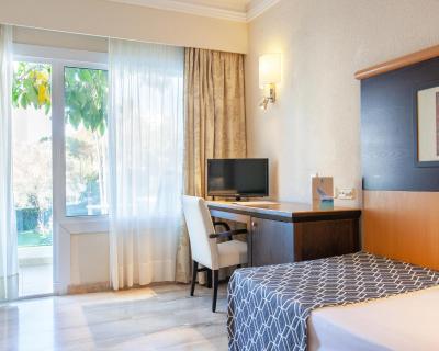 Présentant une décoration simple et lumineuse, cette chambre inclut une télévision par satellite ainsi qu’un balcon surplombant les jardins de l’établissement. Vous trouverez un lit simple.