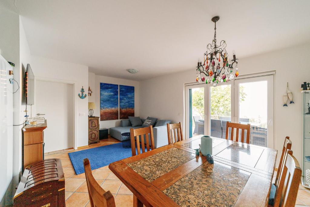 The holiday home with a terrace and sea views has 2 bedrooms, a living room, a flat-screen TV, an equipped kitchen with a dishwasher and an oven, and 1 bathroom with a bidet. Towels and bed linen are offered in the holiday home. The property has an outdoor dining area.