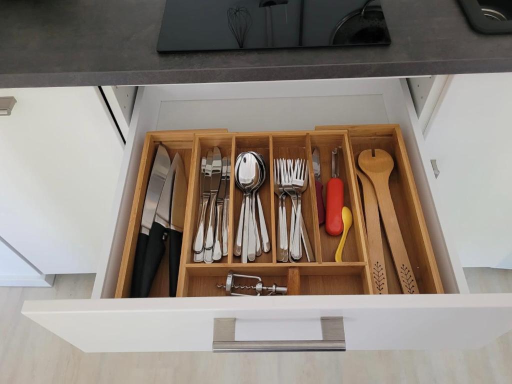 Die Wohneinheiten verfügen über Parkettböden und bieten eine voll ausgestattete Küche mit einem Kühlschrank, einen Essbereich, einen Flachbild-TV sowie ein eigenes Badezimmer mit einer Dusche und kostenlosen Pflegeprodukten. Es gibt eine Herdplatte sowie auch eine Kaffeemaschine und einen Wasserkocher.