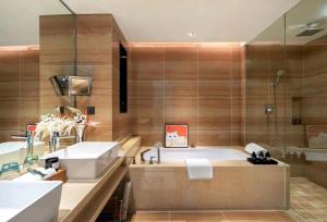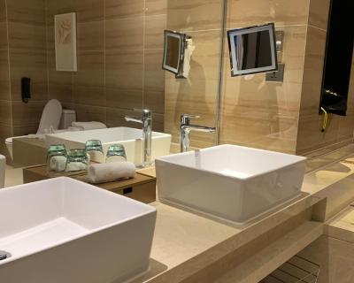 The hot tub is the standout feature of this suite. This spacious suite features 1 living room, 2 separate bedrooms and 2 bathrooms with a bath and free toiletries. Guests can make meals in the kitchen that features a refrigerator, kitchenware, a microwave and a toaster. The air-conditioned suite features a flat-screen TV with cable channels, a washing machine, soundproof walls, a dining area as well as city views. The unit has 4 beds.