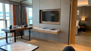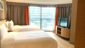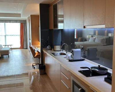 This suite features a hot tub. This spacious suite features 1 living room, 1 separate bedroom and 1 bathroom with a bath and free toiletries. The well-fitted kitchen has a refrigerator, kitchenware, a microwave and a toaster. The air-conditioned suite features a flat-screen TV with cable channels, a washing machine, soundproof walls, a dining area as well as city views. The unit has 2 beds.